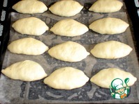 Пирожки выложить на противень, затянуть подпыленной мукой пленкой, оставить на расстойку на 40 минут. Смазать яйцом с солью. Выпекать в разогретой до 180 градусов духовке. |