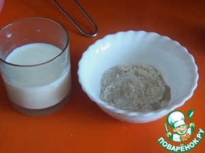Смешать дрожжи с чайной ложкой сахара, ложкой муки и тремя ложками теплого молока. Поставить в теплое место на несколько минут.
