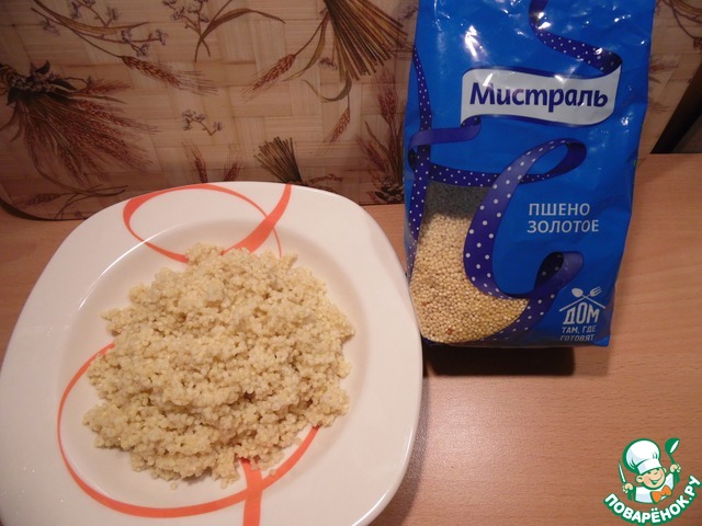 • Пшено отварить в кипящей подсоленной воде до готовности (15 минут).