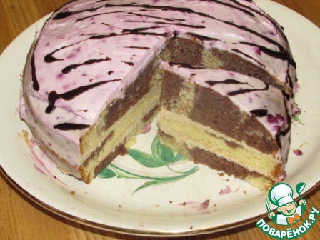 Выложить в смазанную маслом форму поочередно, пятнами. У меня диаметром 20 см
