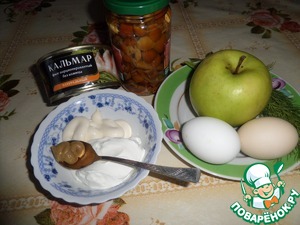 Ингредиенты для «Салат с кальмаром и грибами»: