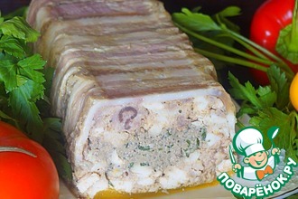Очень вкусный террин, приготовить который сможет даже начинающий кулинар. Эта замечательная нежная и ароматная закуска порадует собравшихся за праздничным столом мясоедов. Тонкие тосты, обжаренные в оливковом масле, соленые огурчики, маринованный перец и острый соус станут прекрасным дополнением к ломтику мясного террина. Свинину следует брать с жирком, чтобы террин получился сочным.