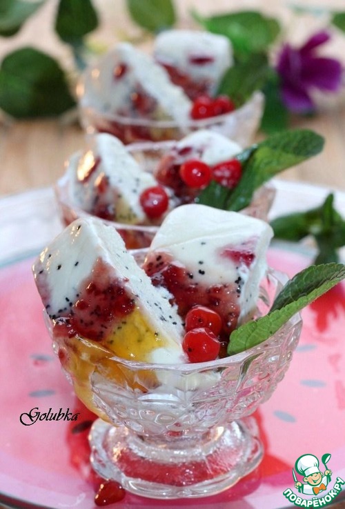Порежьте и оформите фруктовым соусом, ягодами, листиками мяты и подавать парфе только в охлажденном виде.