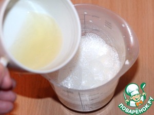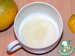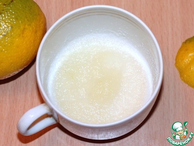 1. Желатин заливаем водой (1:6), добавляем сок лимона и оставляем набухать.