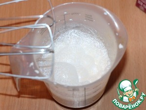 6. Не выключая миксер, влить тонкой струйкой сахарный сироп в желтки, продолжайте взбивать до полного охлаждения. Масса должна стать гуще.