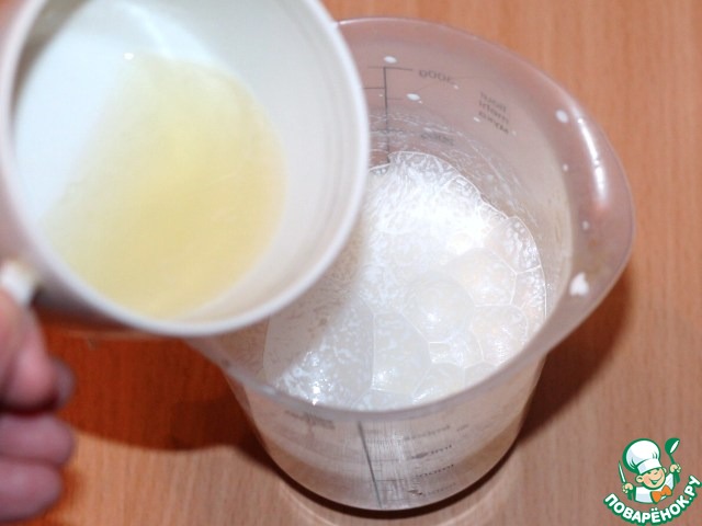 3. и добавить тонкой струйкой разогретый желатин, перемешать.