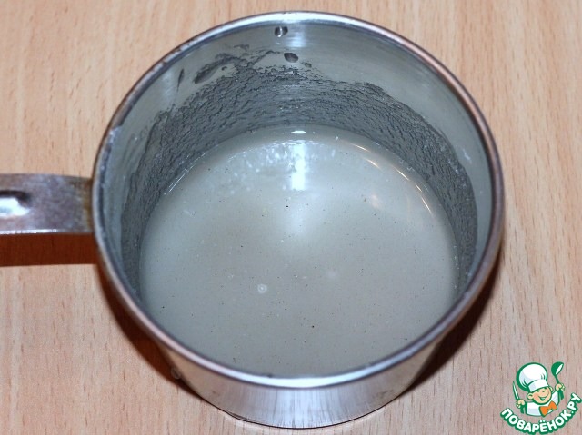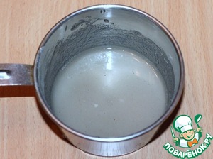 Смешать 50 мл воды с сахарной пудрой, прогреть до 117 С.
