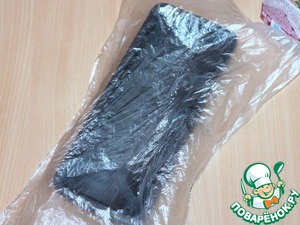 10. выложите пищевой пленкой, слегка смазанной растительным маслом.