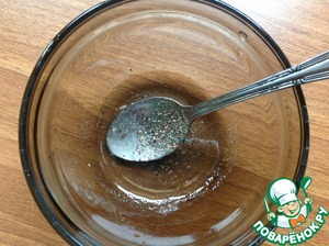 Сначала сделаем маринад-заправку. В пиале смешать масло, уксус, перец и сахар.