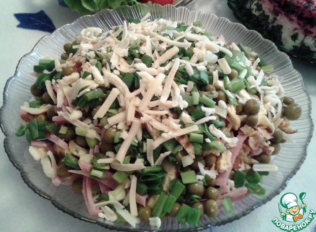 Вкусный и насыщенный ароматами салат с колбасными и копчеными изделиями. Достаточно пикантный и простой в исполнении. Угощайтесь!!!