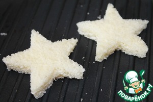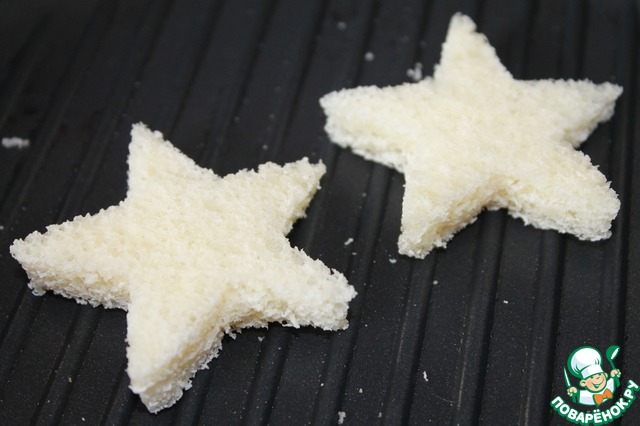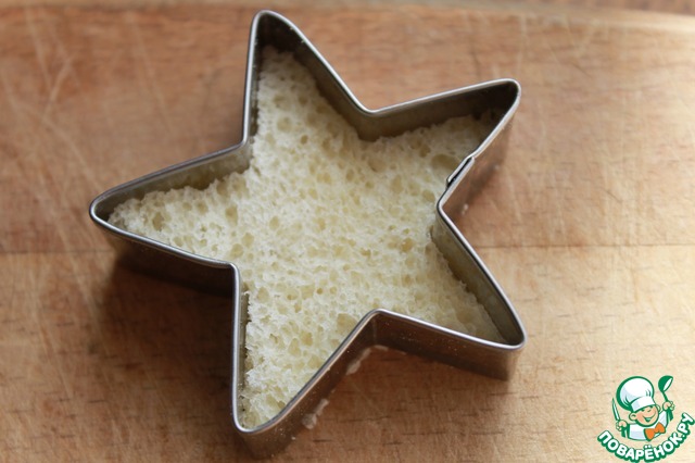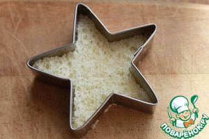 Вот и рыбка готова! Сделаем бутерброды. Я взяла формочку для печенья в виде звезды. Вырезаем хлеб и сыр.