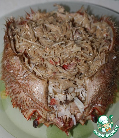 При этом большая часть печени (оранжевого цвета) остаётся в панцире. А сам панцирь используется, как мисочка. -
