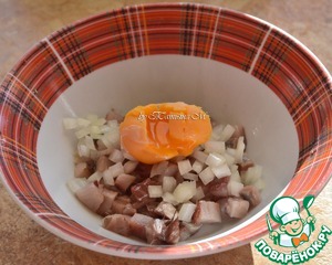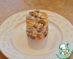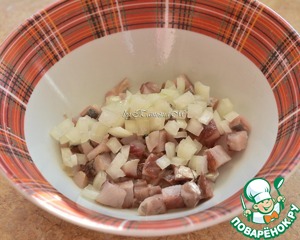 С помощью кольца, выложить на тарелку селедочную основу (половину).