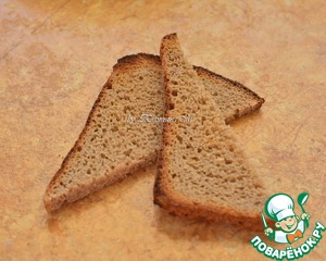 Тонкий ломтик хлеба, разрезанный на треугольники, поджарить в тостере.