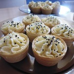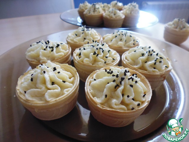 Теперь наполняем кондитерский шприц массой и наполняем тарталетки. Посыпаем ЧЕРНЫМ тмином. Он имеет совершенно другой вкус и запах в отличии от простого. Если его нет, то советую вообще ни чем не посыпать.