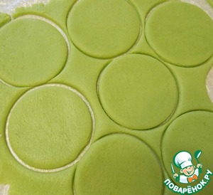 Все, кроме орехов, растереть до однородного теста. Раскатать в пласт толщиной 0,5 см. между двух полиэтиленовых пленок и вырезать стаканом круги.