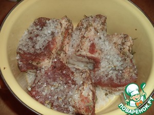 Натираем обсохшие кусочки сала специями, чесноком и щедро обсыпаем солью. Не бойтесь пересолить - сало возьмет соли ровно столько, сколько будет нужно.