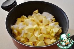 Яблоки чистим, нарезаем не очень мелкими кусочками, кладем в кастрюлю.