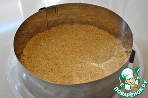 Выкладываем печенье в форму диаметром 24 см, утрамбовываем.