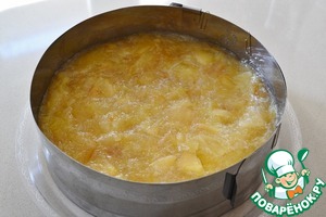 Когда яблоки остынут и начнут "тяжелеть", выкладываем их сверху на печенье. Ставим форму на часик в холодильник.