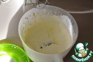 Отдельно взбиваем творожный сыр с 2 ст. л. сахарной пудры и оставшимся ванильным сахаром.