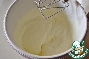 Соединяем сливки с творожным сыром, немного взбиваем.