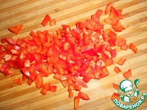 Сладкий перец очистить и нарезать мелкими кубиками.