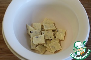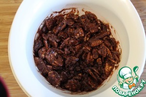 Влить горячую смесь в шоколад, накрыть на 5 минут, хорошо размешать.