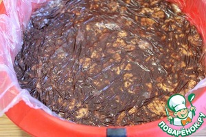 • В разъемную форму на 23 ( если не силикон, то проложить дно и бока пленкой) выложить шоколадную массу