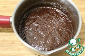 • Снять глазурь с огня, немного остудить и ввести желатин, хорошо перемешать и охладить при комнатной температуре