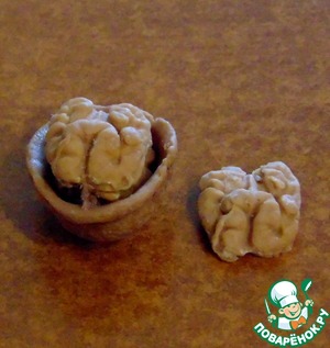 Для более терпеливых можно сделать форму ядра ореха и вложить ядро в шоколадную заготовку.