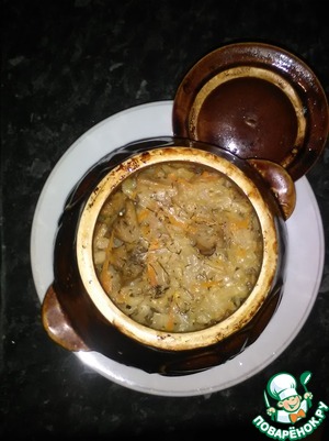 Накрываем горшочки крышками и отправляем в духовку на полтора часа при температуре 150-160 градусов. По истечении времени оставляем горшочки в выключенной духовке еще на час.