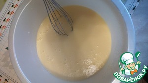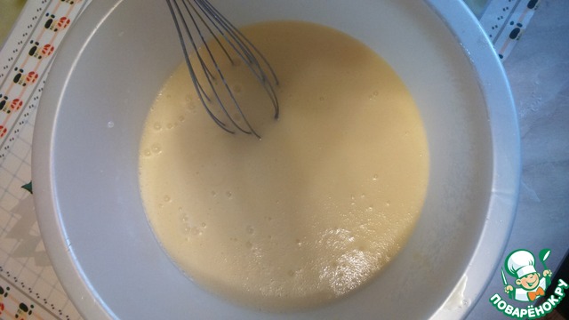 • Кефир с содой и растопленный маргарин добавить во взбитые яйца. Все перемешать (я делаю это блендером).