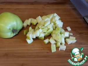 Яблоко лучше брать зеленое или желтое сладкое или кисло-сладкое. Нарежьте его также кубиками.