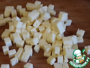 Сыр нарежьте кубиками.