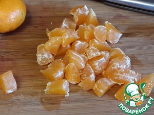 Мандарин разберите на дольки. Каждую дольку нарежьте на 2-3 части.