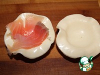 В тарталетку аккуратно вдавливаем сыр красивым цветочком. На края сыра вкладываем рыбу. |