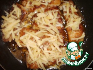 • Сыр натереть на терке. Когда рыба обжарится, посыпать сверху сыром