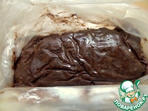 Вынимаем из пакета основную шоколадную массу и переносим прямо на грильяж.