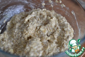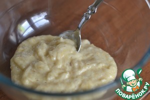 Всыпать хлопья в бананы, размешать и оставить на 10 минут.