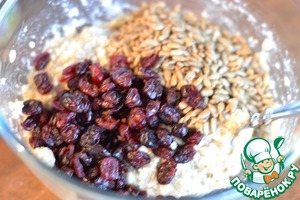 • Добавить яблочное пюре, кокос, бруснику и семечки.