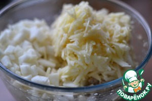 Яблоко настругать на крупной терке, грушу нарезать на мелкие кусочки.