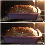 Форму для кекса (23 x 12 см) самзать маслом и присыпать мукой. Выложить тесто в форму и выпекать 1 час при 180*C (350*F). Готовность проверить деревянной палочкой, она должна выйти из кекса чистой.