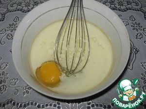 Венчиком взбить яйцо, молоко, масло растительное