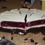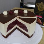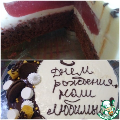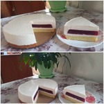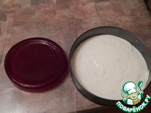 Теперь приподнять круг желе и положить поверх застывшего мусса (если надумаете зовите помощников.. одной тяжело.. думала всё-на этом и закончу.. или уроню или разломится)