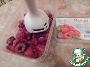 Малину пробить в блендере и протереть через сито. Добавить сахар