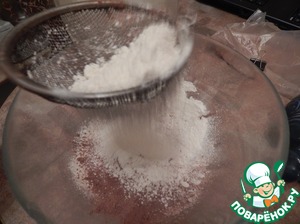 В отдельной миске просеять через сито муку, разрыхлитель и какао.