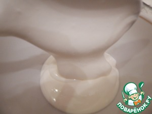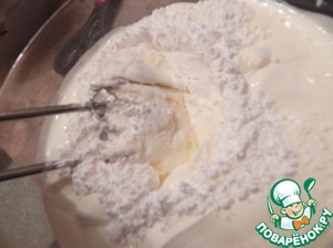 Взбить маскарпоне со сливками, пудрой на маленькой скорости.