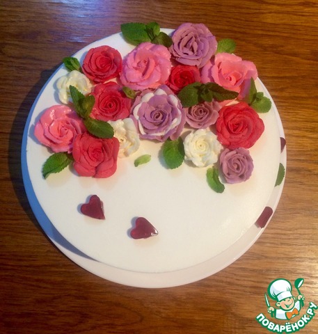 Хочу предложить вам вариацию праздничного торта на День влюблённых-в нём сочетается белоснежность зимы и пламя страсти любви. Кроме красивого внешнего вида, торт очень вкусный, с нежным малиновым желе, окруженным сливочным суфле - он просто тает во рту! А ароматный, пропитанный смесью соуса и коньяка корж придаёт ему завершающие нотки! Прошу всех на дегустацию!