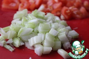 Сельдерей и помидоры нарезать небольшими кубиками.